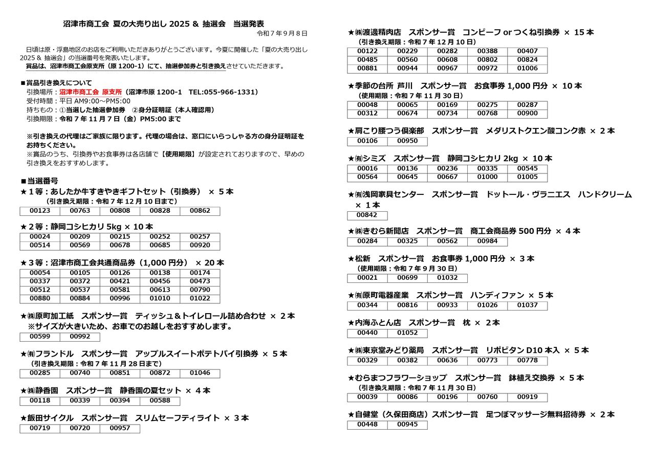 お問い合わせ:沼津市商工会 原支所 (TEL055-966-1331)